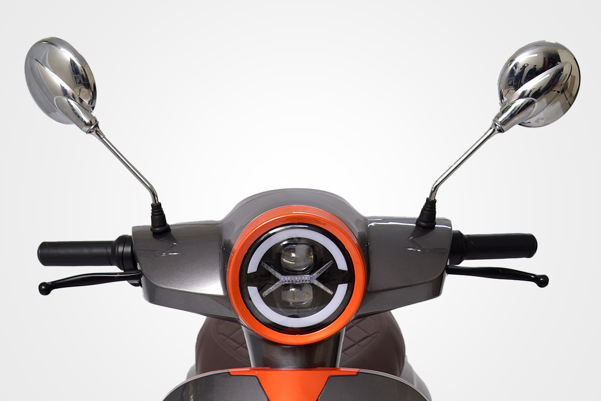 Elegance features a modern LED headlight that combines bright visibility with a sleek design, keeping your rides safe and sophisticated day or night.