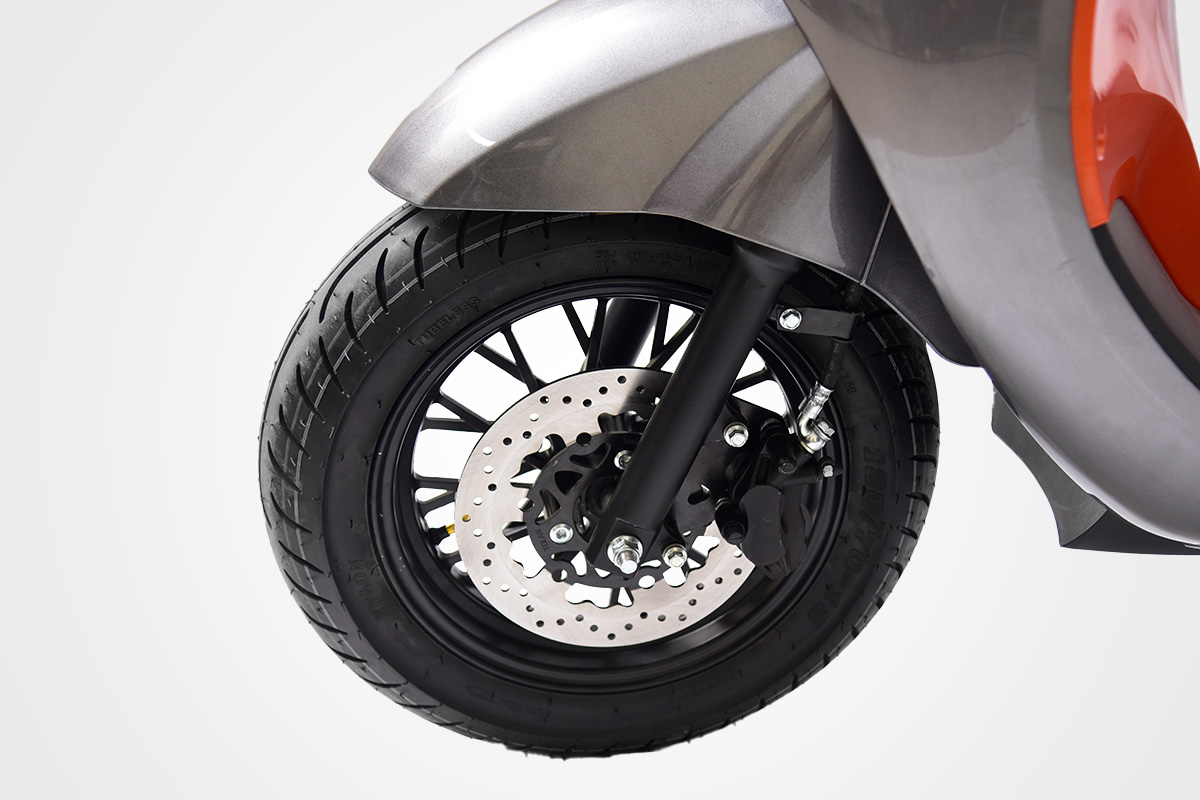 Elegance is equipped with durable tyres that ensure strong grip, stability, and a smooth ride on both city roads and longer routes.